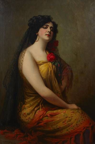 | A portrait of a lady, three-quarter-length, in a yellow dress with a rose | |