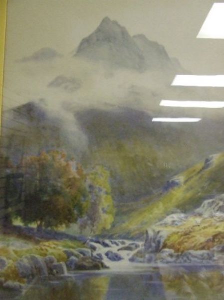 Lakeland landscape, with mountain and waterfall