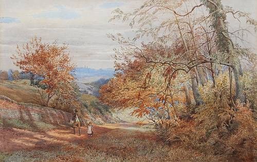 Figures on an autumn woodland path