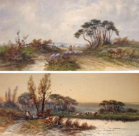 Rural Landscapes with Shepherd and Sheep; Women Gathering Kindling