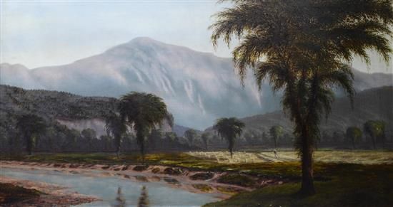 Colonial Victorian landscape with mountains in the distance, gilt frame