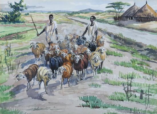 GOAT HERDERS ON THE AFRICAN PLAIN