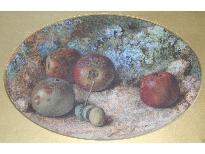 APPLES AN ACORNS BY A MOSSY BANK