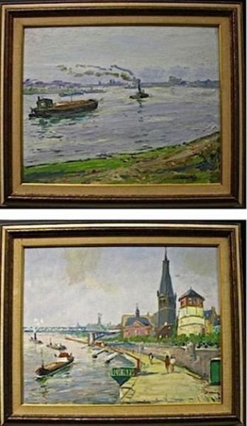 CANAL SCENE WITH FIGURES ON BOARDWALK; DUSSELDORF