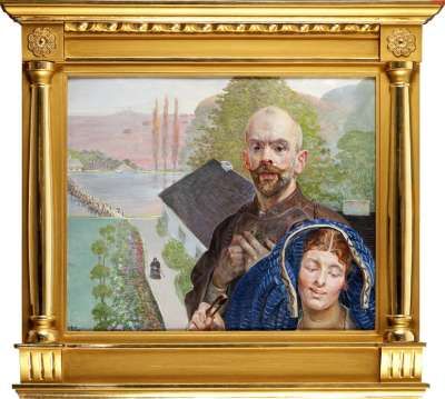 AUTOPORTRET NA TLE DWORU W WIELGIEM, 1909 R.