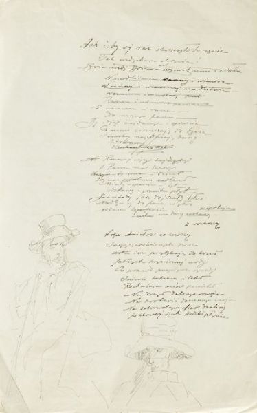 | Rękopis wiersza ze szkicami Jacka Malczewskigo , około 1919 r. | |