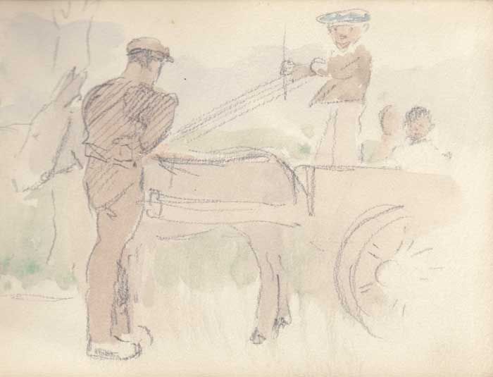 MAN WITH CART, DONKEY AND CHILDREN