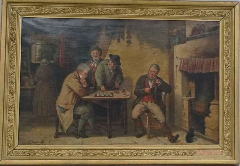 | 'The Draught Players', an interior scene with four gentlemen at the table, and a woman behind them at the window | |
