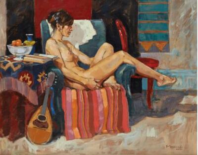 NUDE RECLINING IN AN ARMCHAIR (WITH MANDOLIN)