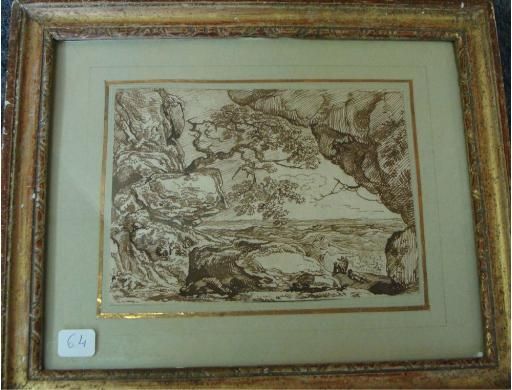PAYSAGE TOURMENTE AVEC ROCHERS ET PERSONNAGES