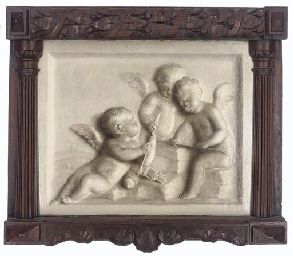 Putti sharpening arrows, en grisaille: a feigned bas relief