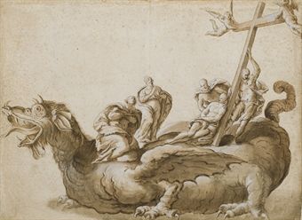 Cinq putti jouant en tenant des grappes de raisins: projet pour une frise