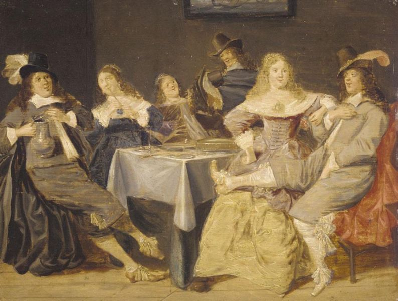 | AN ELEGANT COMPANY IN AN INTERIOR DRINKING, SMOKING AND MERRYMAKING | |