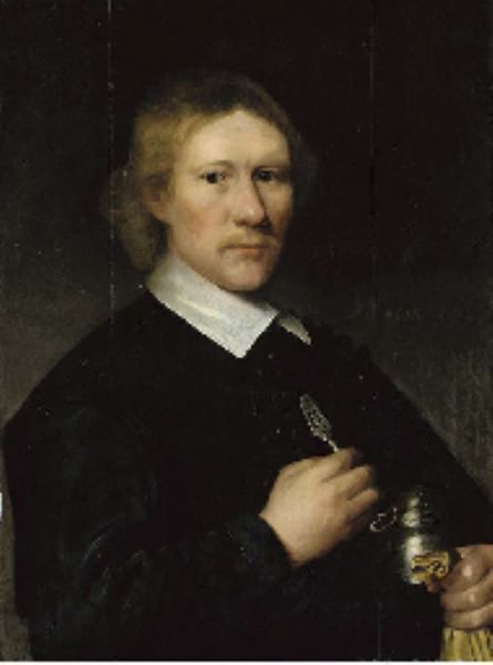 | Portrait of a dentist, half-length, in a black coat with a white collar, a silver tongue-spatula in his right hand and a silver | |