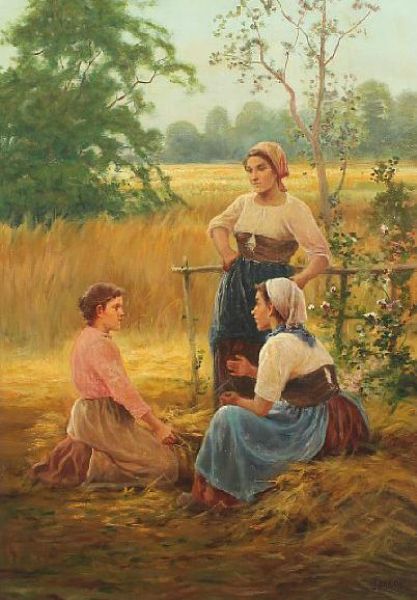 hree women talking in the field