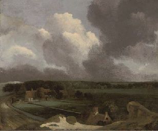 | An extensive landscape with farmhouses and figures in a bleaching ground | |