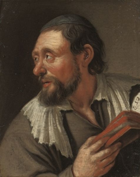 | A rabbi, bust-length, with a Torah in his right hand | |