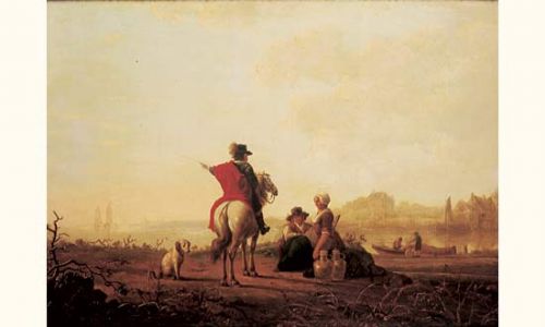 | Cavalier et couple de paysans dans un paysage d'estuaire | |
