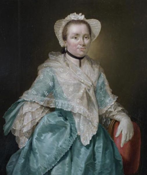 | Portrait of a lady, three-quarter-length, in a blue silk dress, a white lace shawl and a white bonnet | |
