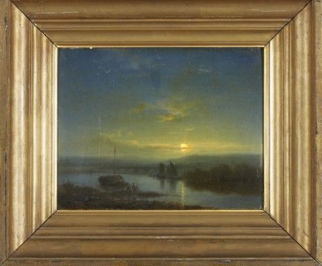 Månskenslandskap med fiskare