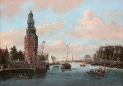 Vue du canal de l'Oudeschans à Amsterdam, avec la tour Montelbaan