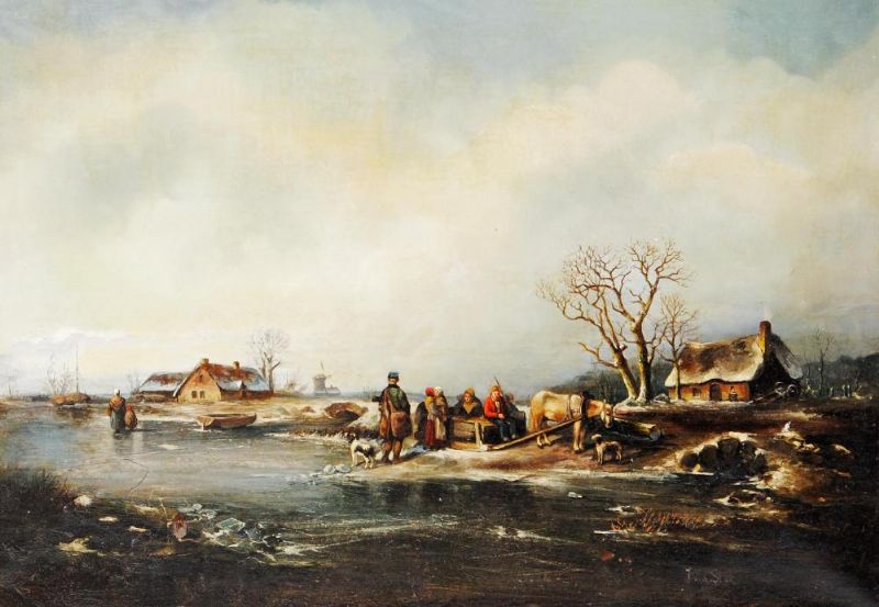 , Frozen Lake Scene with Figures,