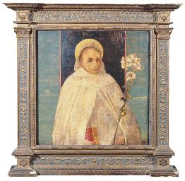 A saint holding a white lily