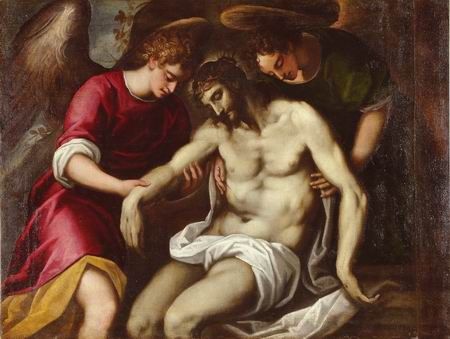 LE CHRIST SOUTENU PAR DEUX ANGES