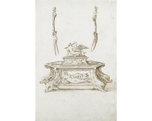 | Designs for a salt cellar and egg dish with Leda and the Swan, with a fork and spoon | |