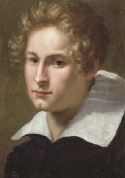 | Portrait of a young man, bust-length, in a black coat and white collar | |