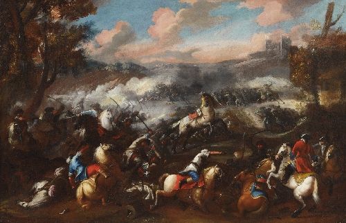 A PAIR OF CAVALRY SKIRMISHES WITH LANDSCAPES