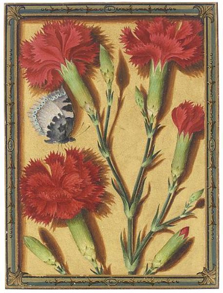 | CLOVE PINKS AND A SMALL TORTOISESHELL BUTTERFLY | |