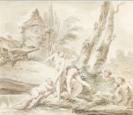 | Un paysage avec trois nymphes au bain, surprises par trois satyres | |