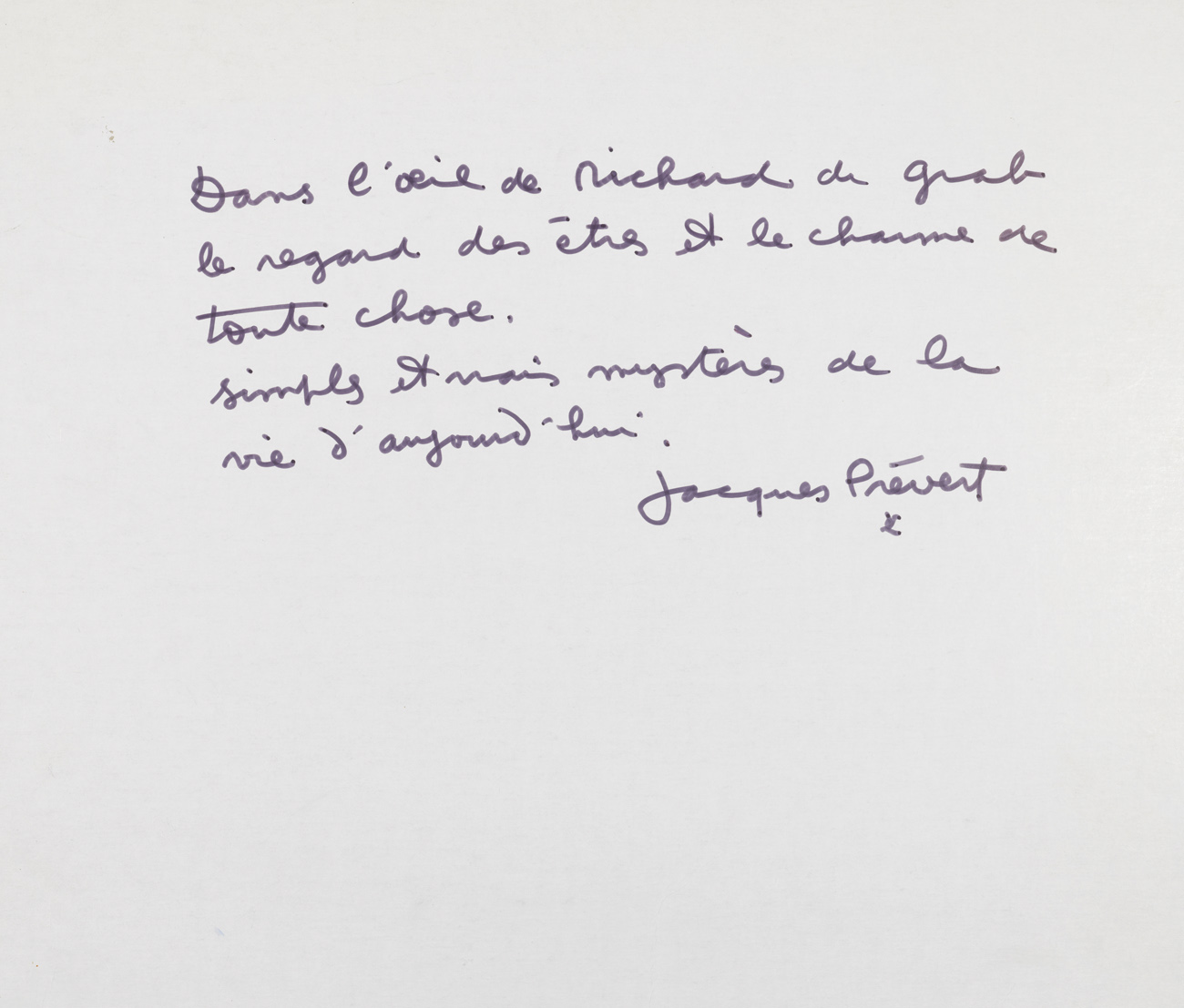 | Dedication of Jacques PREVERT to Richard de Grab: "In the eye of Richard, the look of the beings and the charm of all things" | |