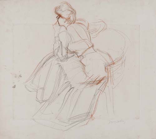 | Pencil and reddish brown crayon on heavy cream wove paper | |