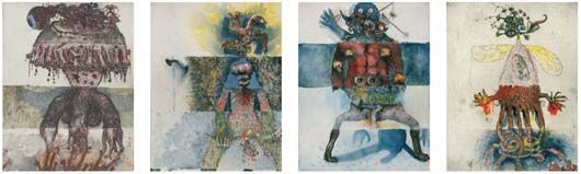 | One big eyeball and millions of arms I; Pregnant Eye Head I; Swastika Face I; and Urinating I, from the Exquisite Corpse Series, | |