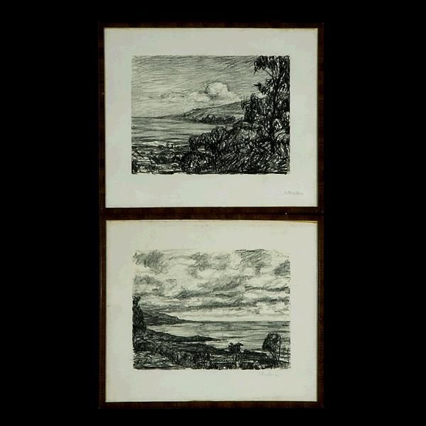 Pen lithographs printed on tissue thin paper mounted onto wove paper