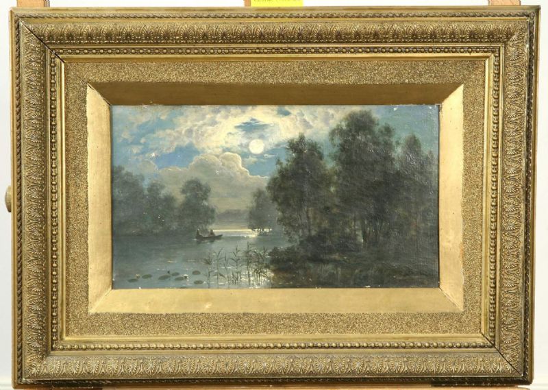 Månsken över insjölandskap med eka