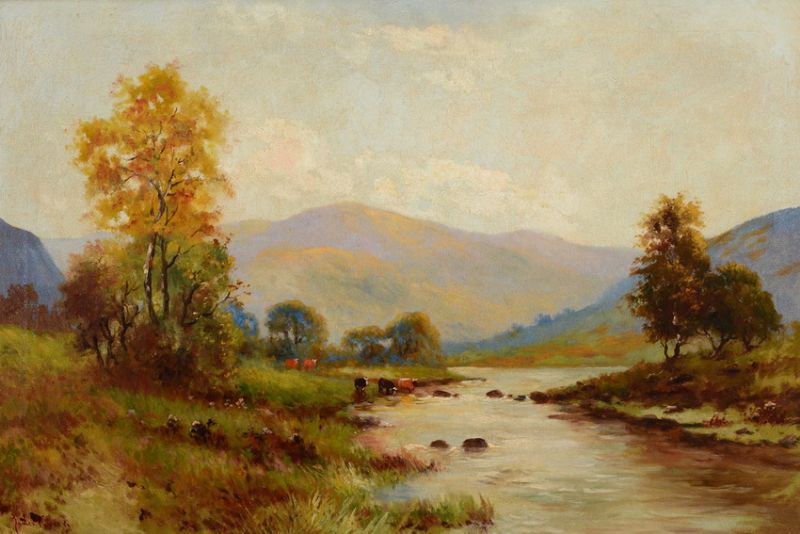 Highland Landscape with Cattle Crossing Stream
