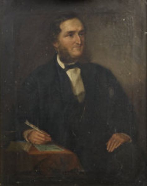 Portrait of a man in a black coat, half length, seated, writing a letter