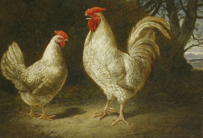 | A SILVER-SPANGLED COCK AND HEN; A SPECKLED COCK AND HEN | |