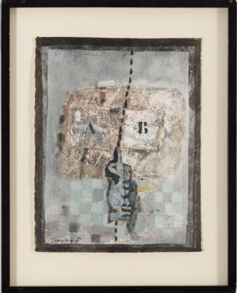 Gouache oil and collage on laid paper