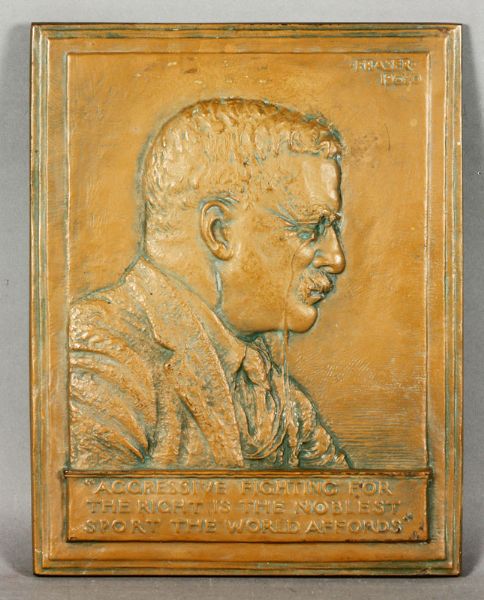 bronze bas-relief of Theodore Roosevelt