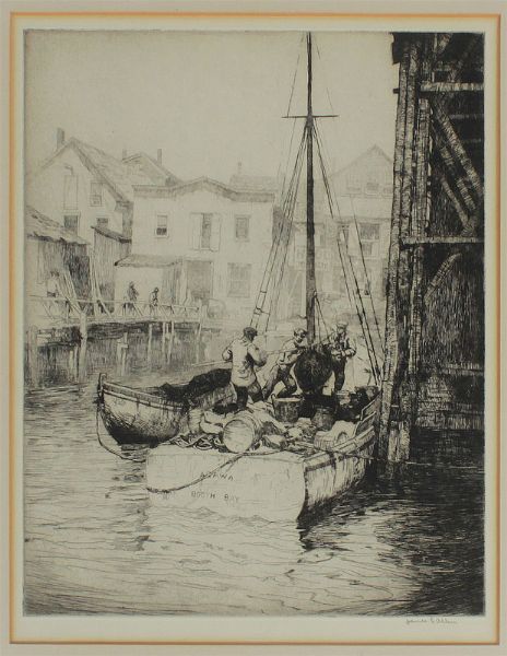 Booth Bay Dockside Scene with Fishermen