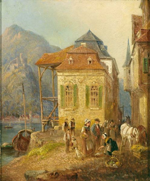 Paar Gemälde: mainfränkische Architekturansichten mit Personenstaffage