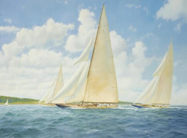 J-class yachts, including the King's Britannia and Endeavour, racing in the Solent