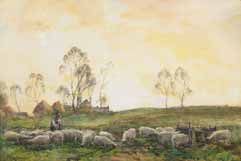 A FARMER AND HIS FLOCK, EVENING