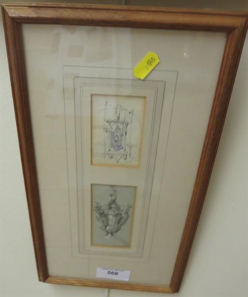Design for a lantern fitting; and Study of a hanging mirror and lantern