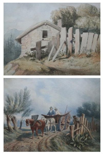 HILLSIDE COTTAGE and HORSE DRAWN CART: TWO WORKS