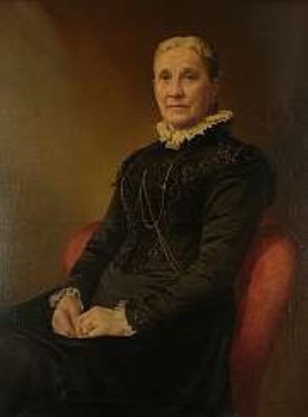 | Portrait of an older woman, seated, wearing a black dress with a white lace collar | |